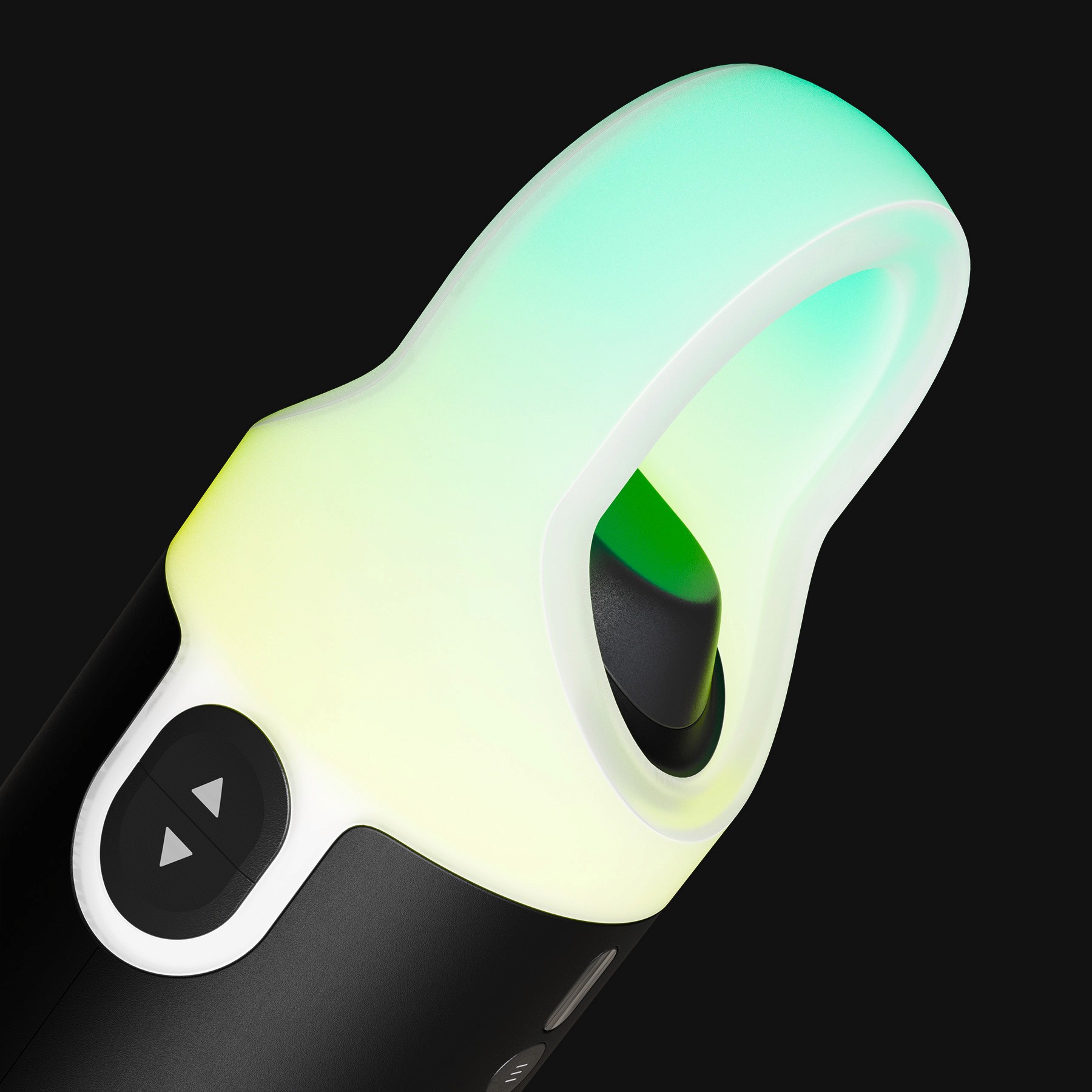 The colored top displays the color you're spraying, enhancing the experience for you and your audience.