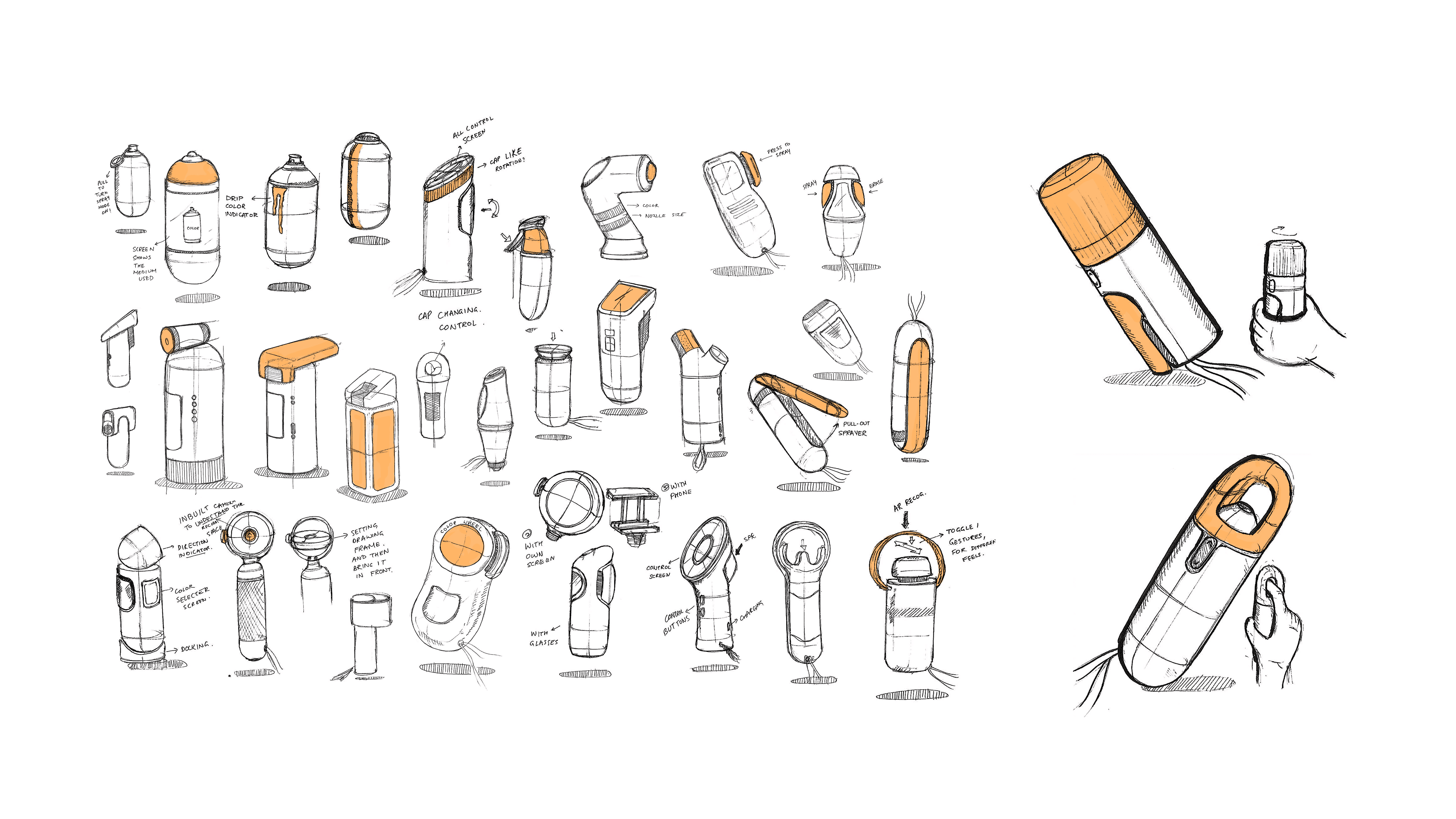 I focused on three key criteria: creating a tactile controller that simulates spraying, integrating AR control, and providing feedback in AR. I began with concept sketches, then moved to CAD and prototyping to test feasibility and manufacturing potential.