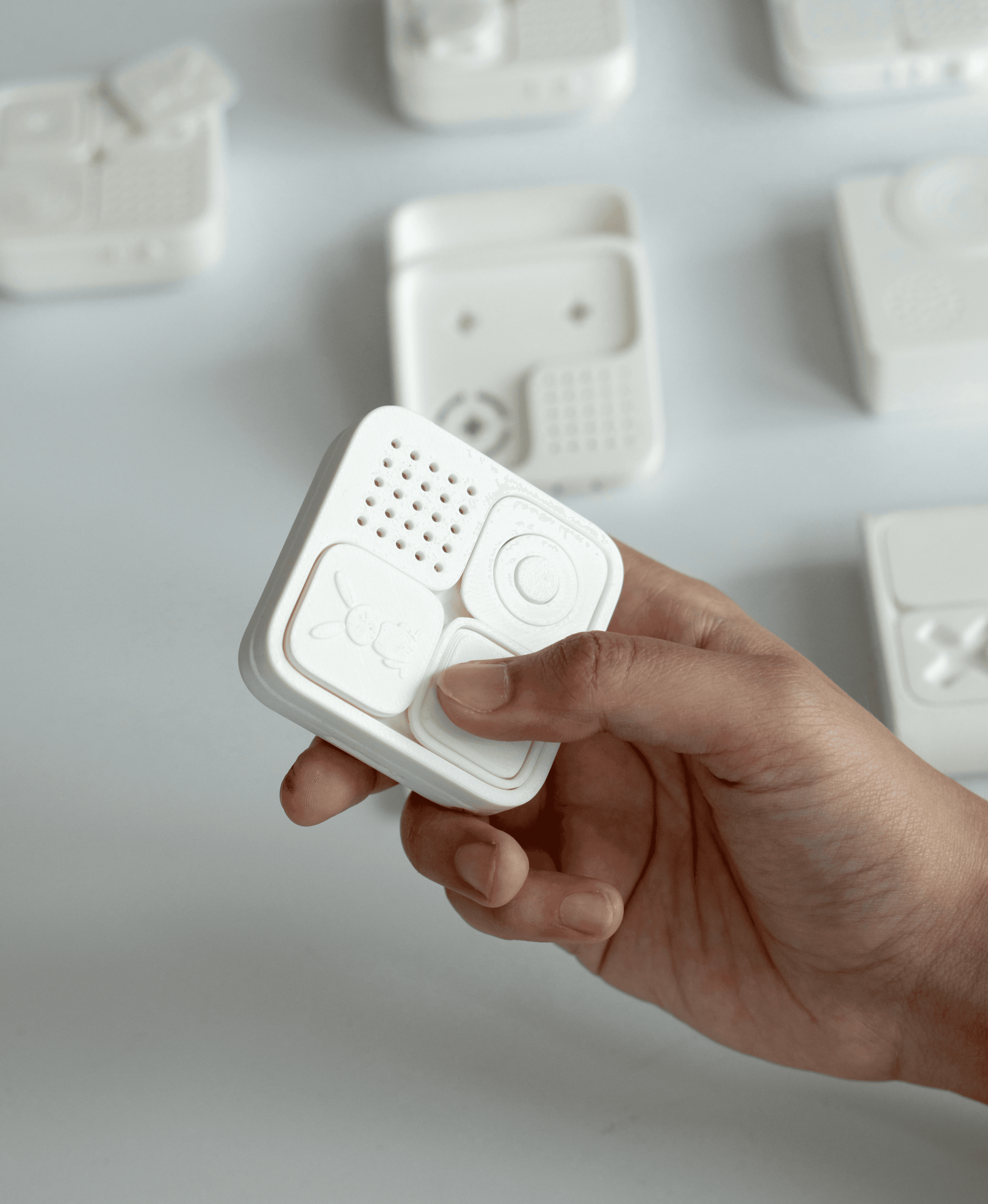 In this quick but focused sprint, we began with tight size constraints and the challenge of creating a device that felt playful, durable, and intuitive for kids. Through rapid sketches, form studies, and hands-on 3D explorations, the design quickly took shape. By iterating fast - testing proportions, buttons, tokens, and overall ergonomics - we brought Bunny to life with a cohesive language that balanced function, charm, and child-friendly usability.
